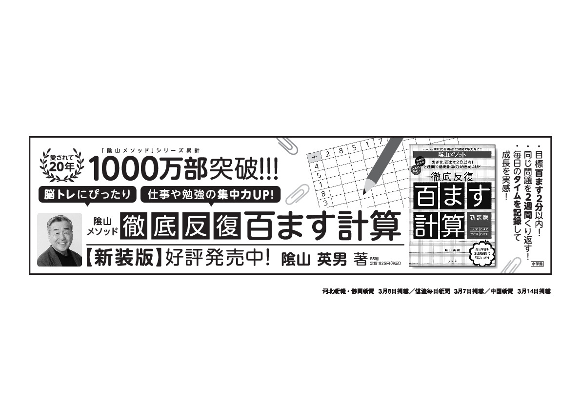 [ 河北新報・静岡新聞・信濃毎日新聞・中国新聞 ] 陰山メソッド 徹底反復 百ます計算 新装版